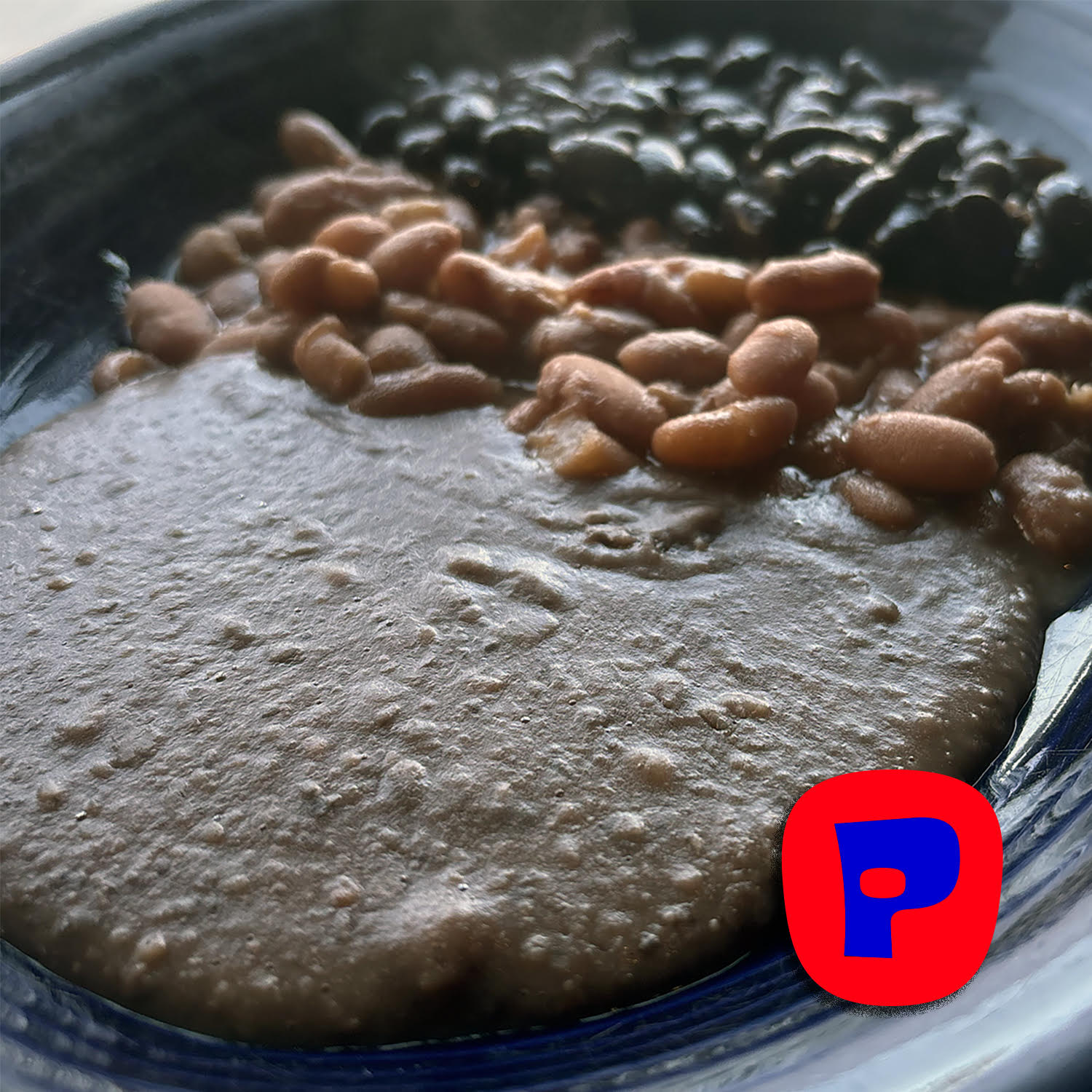 One of the questions we get asked the most is why we don’t offer refried pinto beans. When we first opened Papalote Mexican Grill we did use pinto beans. The challenge we faced is that traditionally refried pinto beans are a lot heavier and more, shall we say, substantial, precisely because of the lard they were prepared with. Vegetarian pinto beans feel weak, sort of watered down. We’ve been conditioned to expect a certain thickness and density when savoring pinto refried beans. That’s not the case with black refried beans. There’s not Pavlovian reaction when you see a plate of black refried pinto beans. There’s the element of surprise. Black refried beans evoke a sense of novelty and a certain (unintended) sophistication.